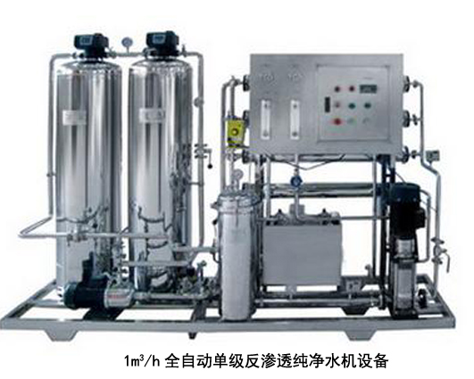 反滲透設(shè)備應(yīng)用膜分離技術(shù),能有效地去除水中的帶電離子、無(wú)機(jī)物、膠體微粒、細(xì)菌及有機(jī)物質(zhì)等。是高純水制備、苦咸水脫鹽和廢水處理工藝中的最佳設(shè)備。廣泛用于電子、醫(yī)藥、食品、輕紡、化工、發(fā)電等領(lǐng)域。